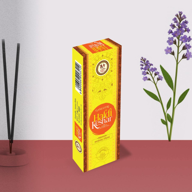 Experience the divine blend of turmeric and saffron with Gangotri Haldi Keshar Premium Incense Sticks, and let every fragrant moment bring peace, purity, and devotion into your daily spiritual journey.