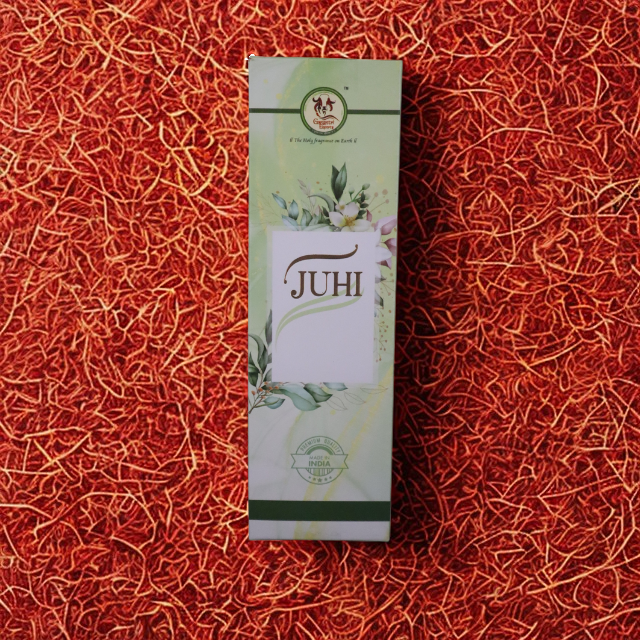 Each stick is hand-rolled with natural ingredients, pure essential oils, and aromatic resins to ensure a long-lasting fragrance that soothes the mind and uplifts the spirit. The Juhi scent is celebrated in Indian tradition for its ability to calm the senses, promote emotional balance, and create an inviting atmosphere for daily pooja, meditation, yoga, or simple relaxation.